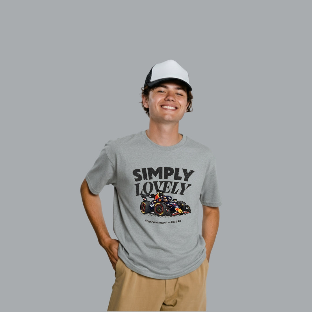 - Unique Graphic: Features the eye-catching "SIMPLY LOVELY" slogan alongside a subtle racing graphic, perfect for car enthusiasts, F1 fans, or anyone who appreciates a cool, clean design.